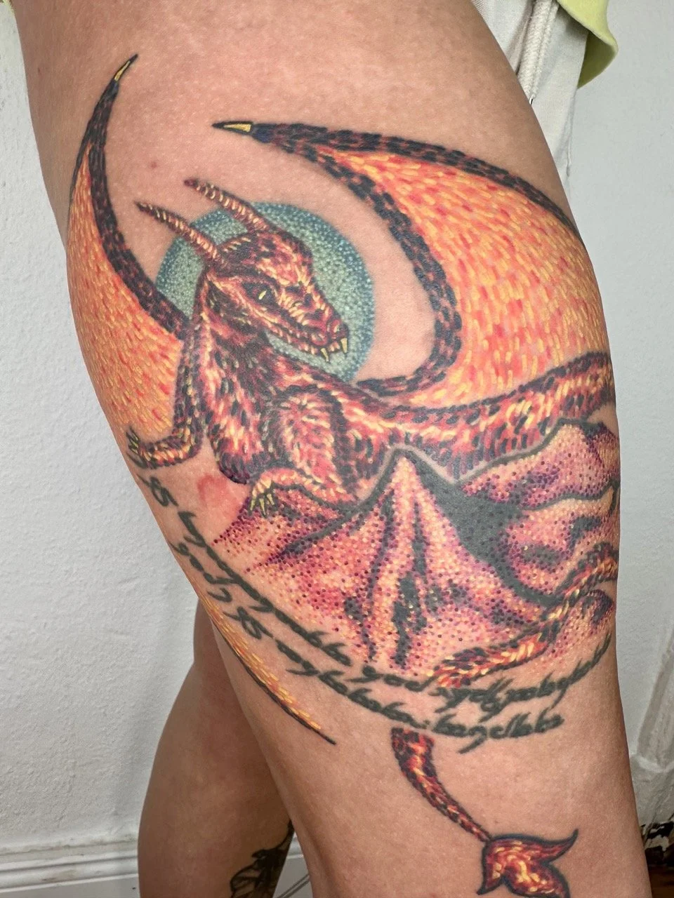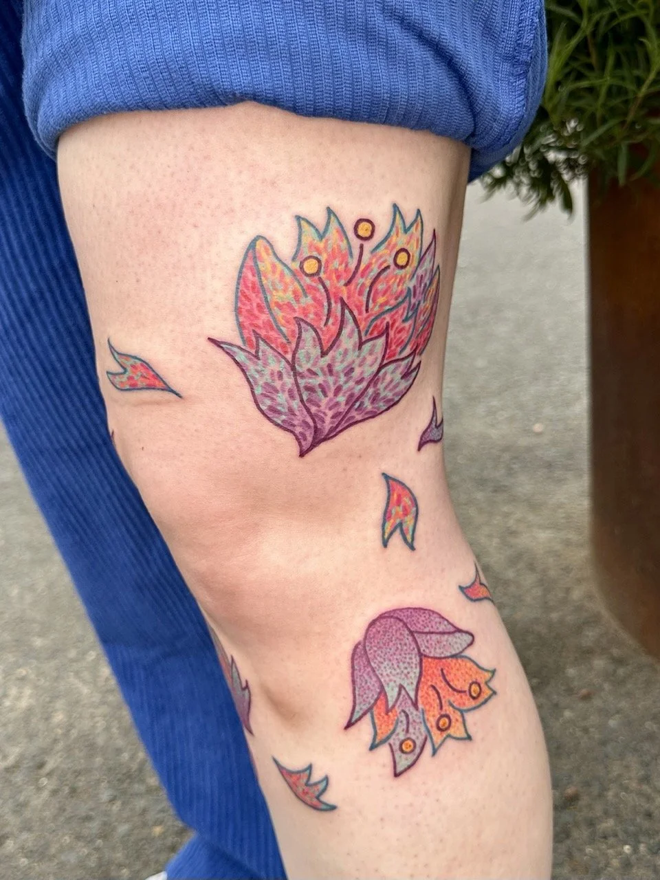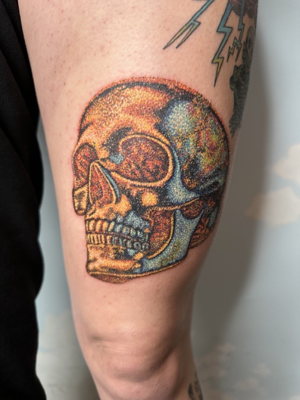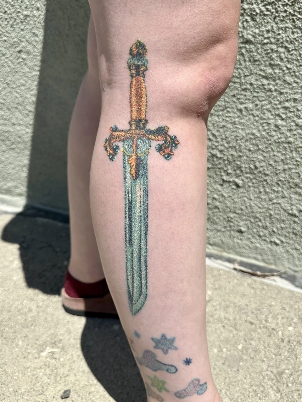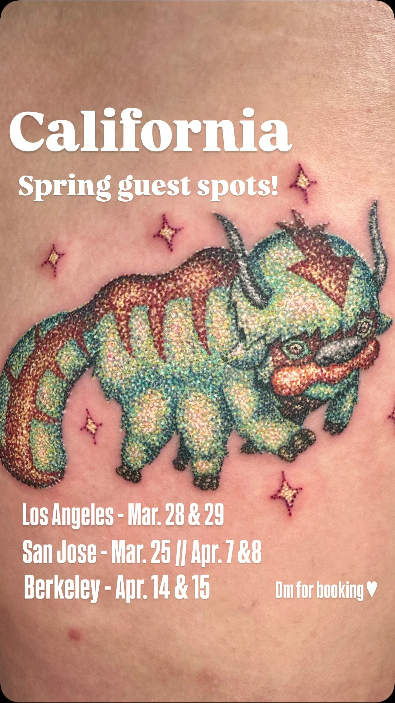 My unique “Glitter Realness” tattoos are an exploration and expansion of 3D hyper-realism art. This style is my creative take on realism, infused with an abstract, glittery twist. Each tattoo is a meditative process, built one colorful dot at a time.