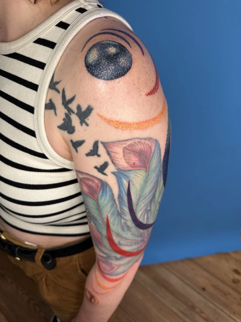 Inspired by impressionist work like Starry Night, with this painterly style of tattoo we can add a unique textural beauty and flow to any piece.
